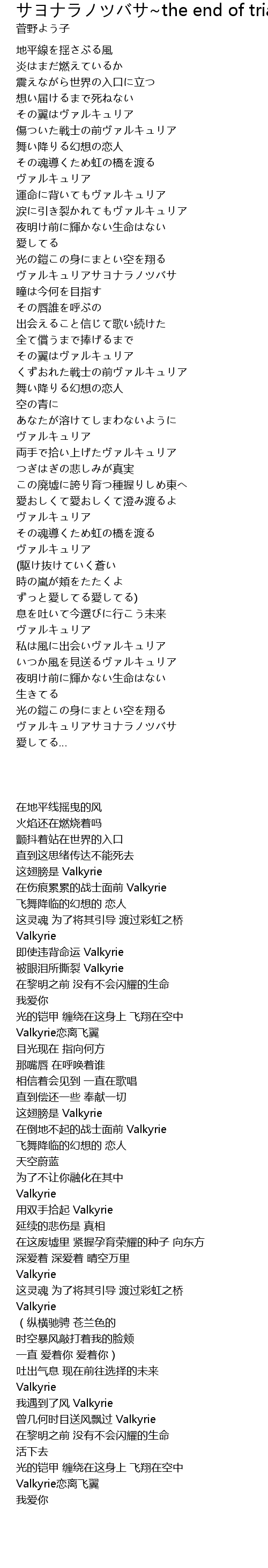 サヨナラノツバサ The End Of Triangle 劇場版マクロスf 恋離飛翼 サヨナラノツバサ の歌詞ページ 歌手 May N 中島愛 アニソン 無料アニメ歌詞閲覧サイト