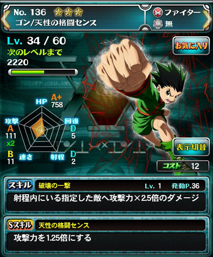 H Hバトオル ゴン 天性の格闘センス 3 バトオル攻略 ハンターハンターバトルオールスターズ攻略サイト