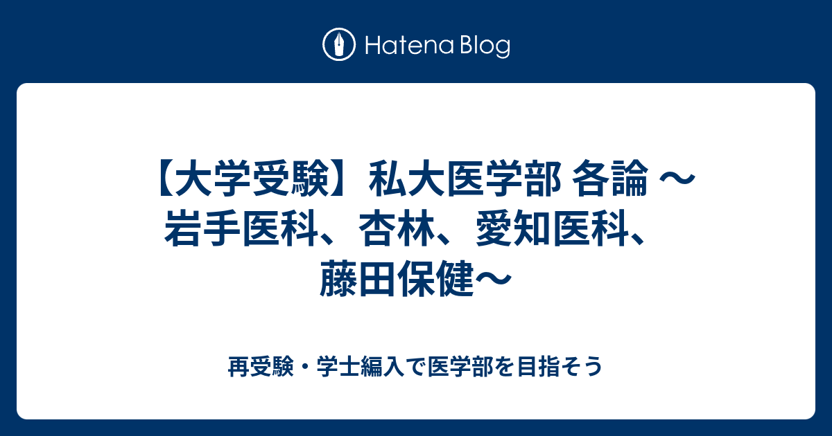 大学受験 私大医学部 各論 岩手医科 杏林 愛知医科 藤田保健 再受験 学士編入で医学部を目指そう