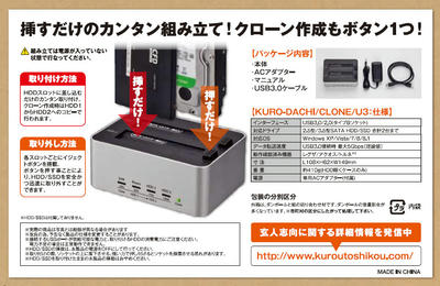 玄人志向 Hddスタンド Usb3 0接続 Kuro Dachi Clone U3 パソコンなしでhddのまるごとコピー機能付き