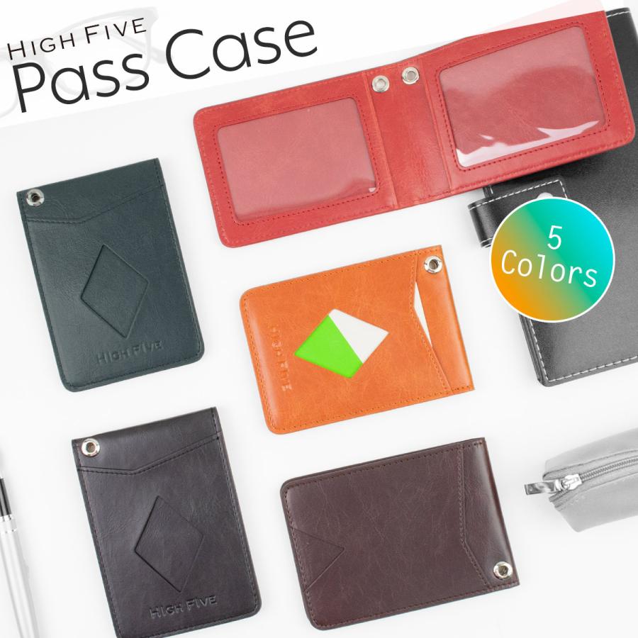 High Five パスケース 二つ折り 定期入れ 牛革風puレザー カードポケット4枚 3面 Icカード 2枚 全5色