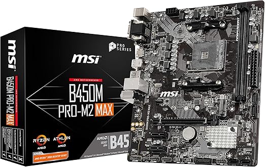 Amazon Com Msi Proseries Amd Ryzen 1st And 2nd Gen Am4 M 2 Usb 3 Ddr4 D Sub Dvi Hdmi Micro Atx Motherboard B450m Pro M2 Max B450mpm2max Computers Accessories